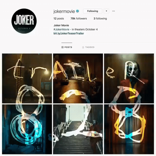 The Joker campaign was truly a labor of love. Having worked with DC Comics for years, we knew the challenge would be presenting this “grown up” version of a classic character essentially removed from the lore he was born out of, but how could we present this bold, compelling character to a new, cinephile audience without abandoning the built-in audience the film would already have going in? Our answer was to be BOLD — in creative, strategy, and execution. Starting with launch, we collaborated with Warner Bros on an Instagram trailer drop stunt that strategically hid the trailer launch date in six different videos, across both domestic and international WB accounts. Since we already had an active audience finely attuned to what was happening on the channels, the stunt immediately piqued audience interest and quickly had fans and press outlets piecing together the videos to find out the date of the new trailer’s arrival.